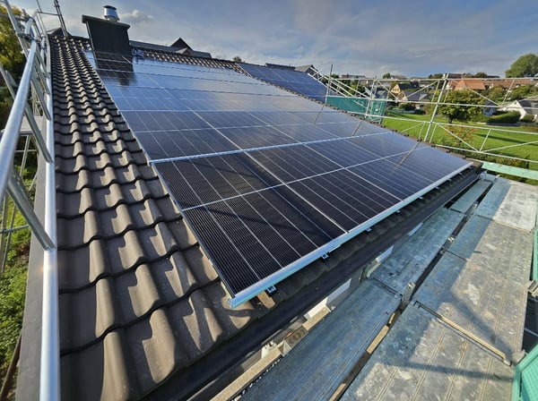 Schrägdach Für Schrägdächer bieten wir maßgeschneiderte Aufdachanlagen. Diese Systeme sind eine effiziente Lösung für die Nutzung von Solarstrom und fügen sich harmonisch in das Erscheinungsbild Ihres Hauses ein.